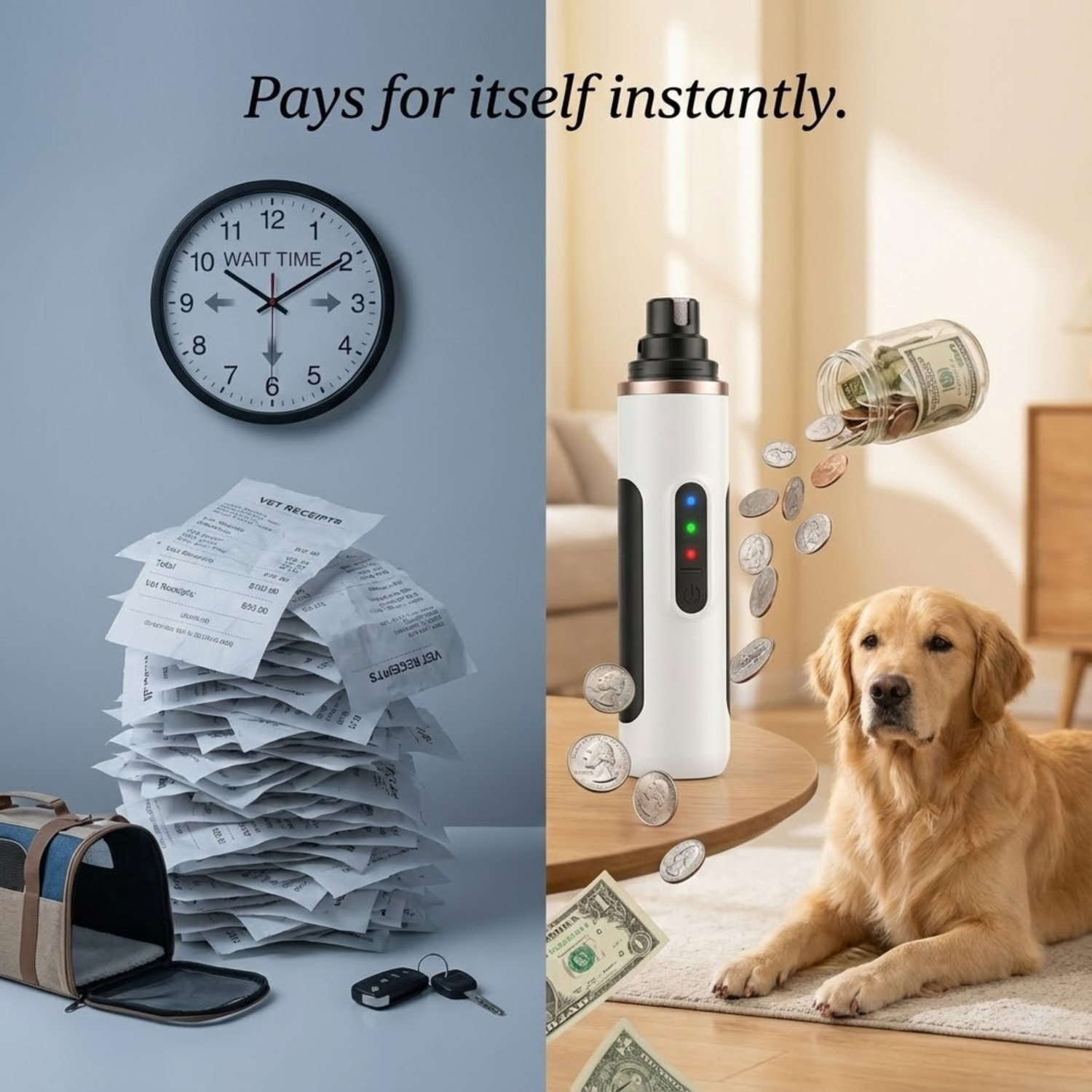 Professional nail trims cost £15-30 every 6-8 weeks, adding up to over £300 annually—and that's if your dog even tolerates the vet without sedation. This grinder is a one-time investment that pays for itself after just two uses. You'll never again waste an afternoon driving to appointments, sitting in stressful waiting rooms, or wondering what's happening behind closed doors. Plus, you can trim on your schedule, stopping the clicking sounds on your floors and preventing the joint damage that comes from overgrown nails.